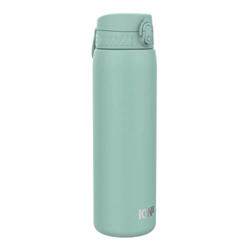Ion8 Lightweight 1 Litre Steel Water Bottle, Non-Insulated, Leak Proof, Easy to Open, Secure Lock, Dishwasher Safe, Flip Cover, Carry Handle, Ideal for Travel & Active Lifestyles, Dark Green