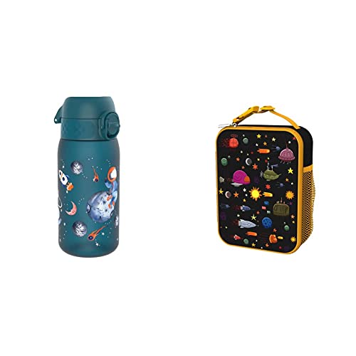 Ion8 Leak Proof Kids Water Bottle, BPA Free, Space, 350ml (12oz) I8LBKSPACE Lunch Bag, Polyester, Spaceships,Medium