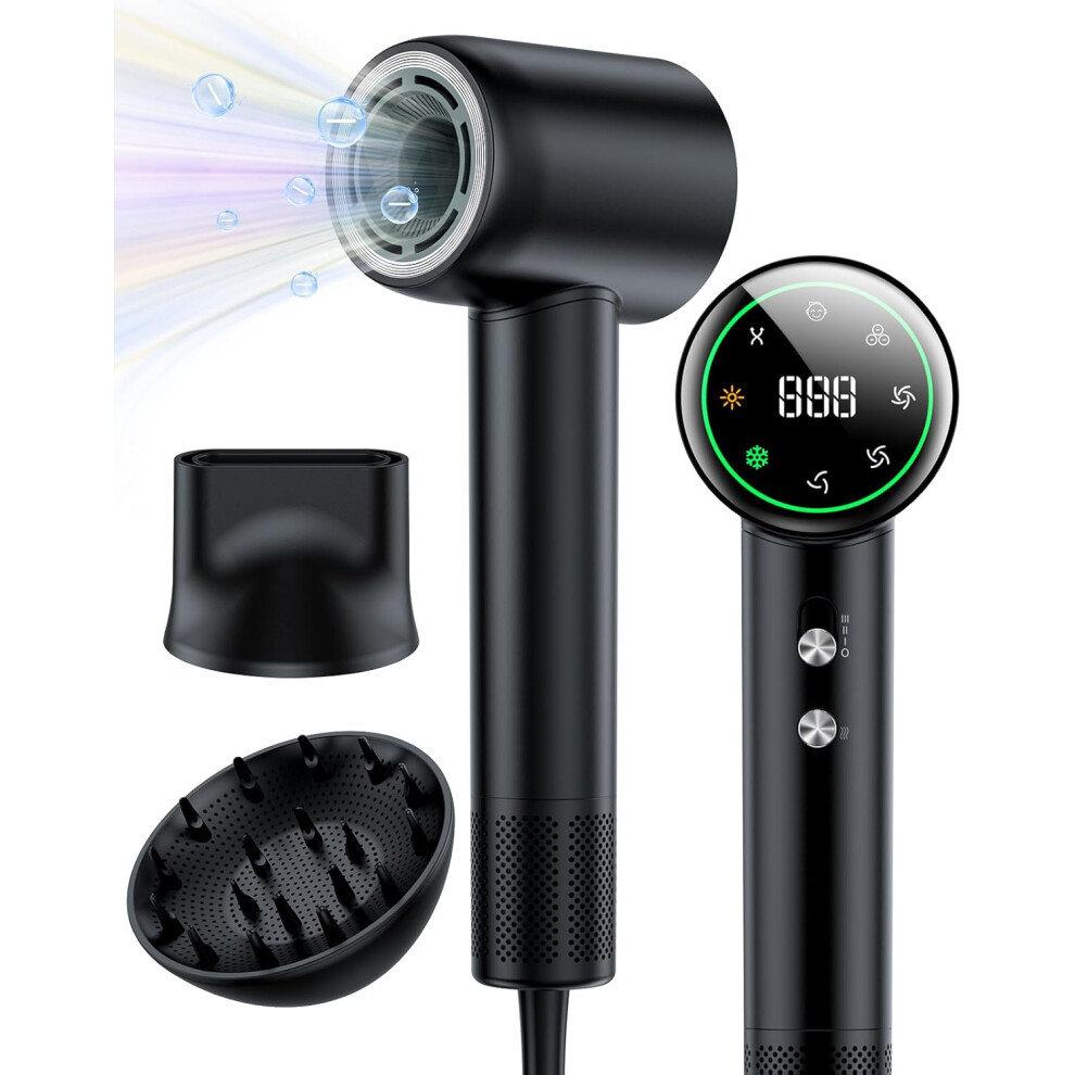 Ionic Hair Dryer – 150,000 RPM Brushless Motor Fast Drying, Professional Hair Blow Dryer with Diffuser, 3 Heat & 3 Speed Settings, Low Noise, Cool Shot, Anti-Frizz Hairdryers for Women & Man