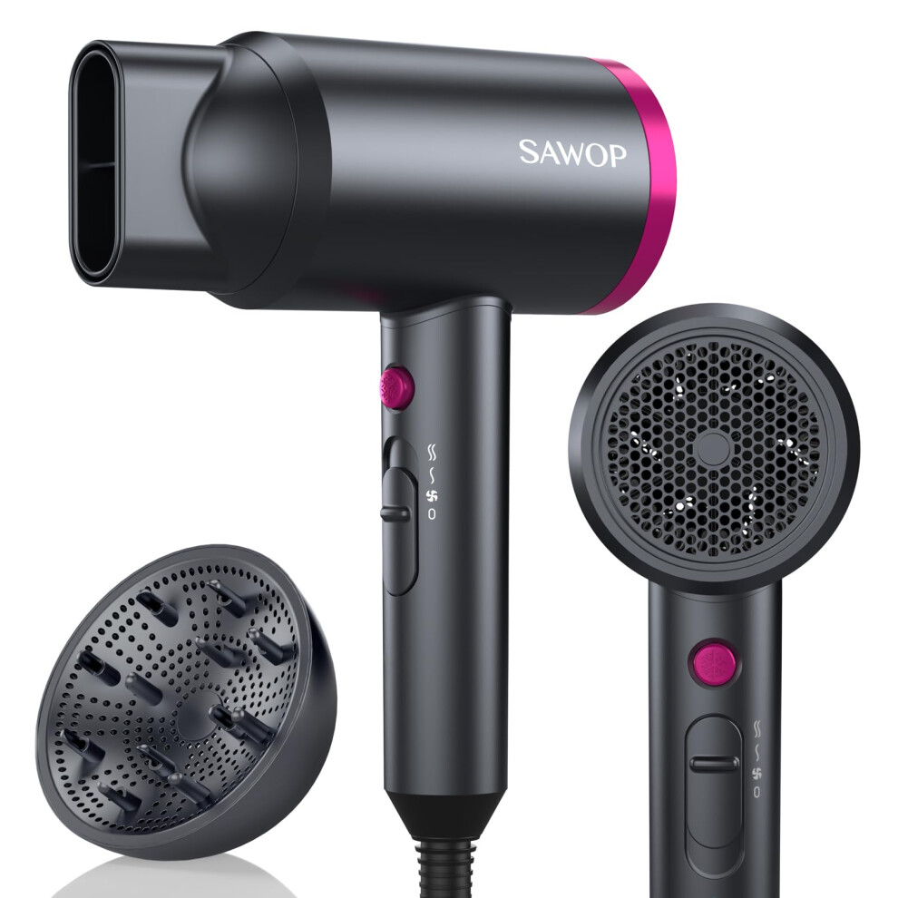 Sawop Hair Dryer with Diffuser, Lightweight Blow Dryer for Curly Hair for Women/Men, 1800 Watt Ionic HairDryer, Blow Dryer with Nozzle for Fast Drying