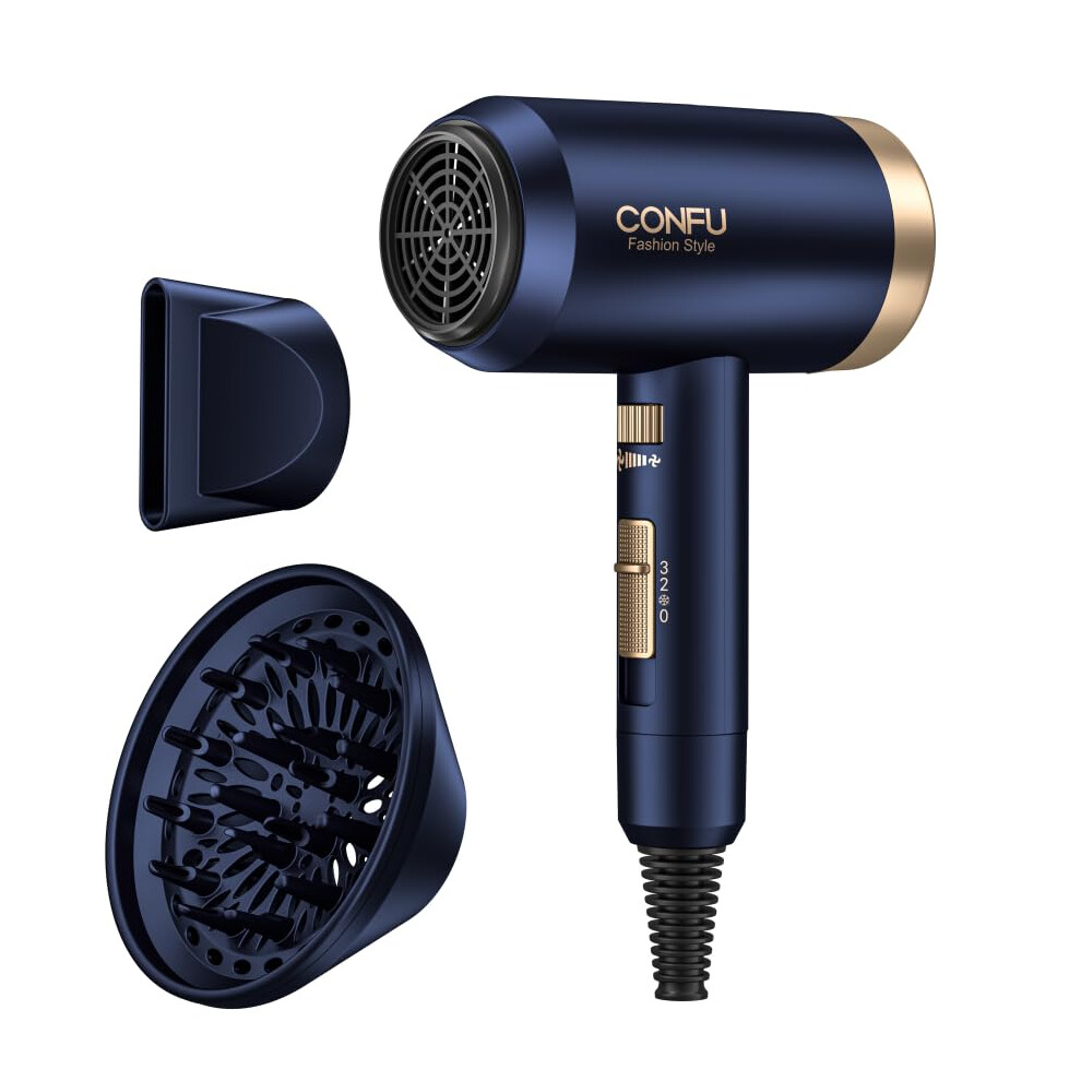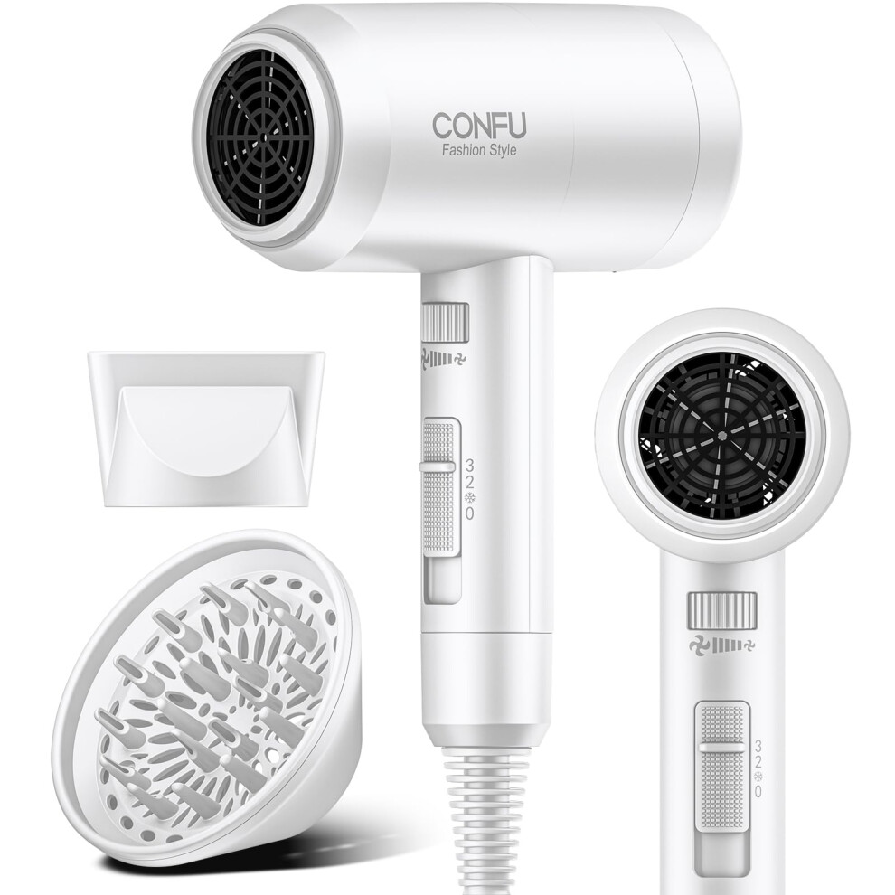 CONFU 1800W Hair Dryer, Ionic Hair Blow Dryer, Lightweight Hair Dryers with Cool Shot Button & Diffuser & Concentrator for Travel Salon Home Use, Dark