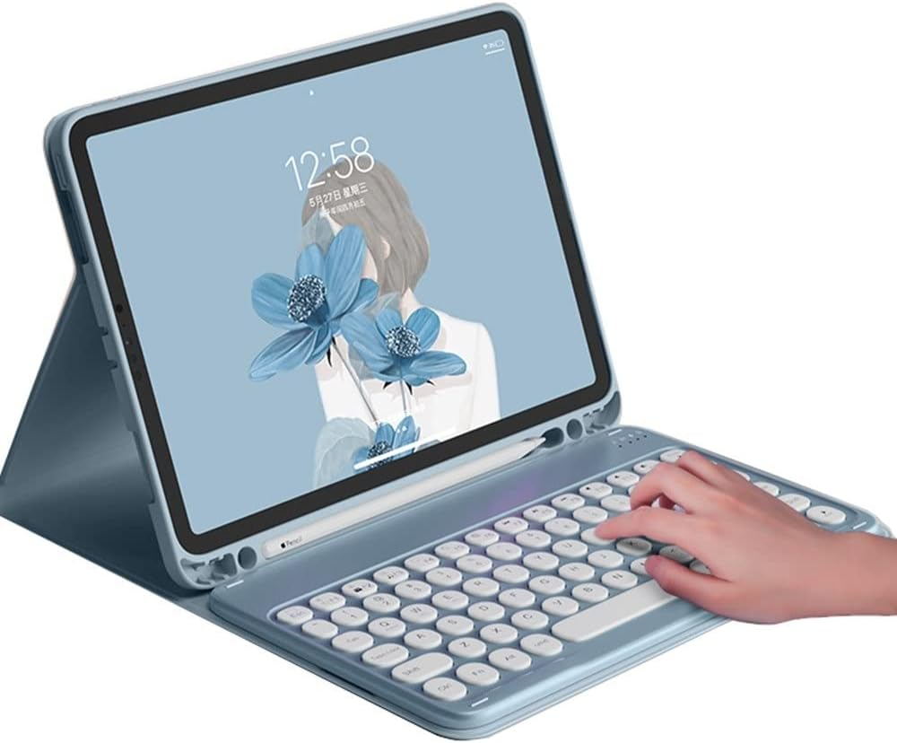 CLALOC Keyboard Case for Ipad Pro 12.9 Inch 6Th 5Th 4Th 3Rd Generation(2018,2020,2021,2022) with Bluetooth Mouse Cute Round Key Touch Detachable Trackpad Keyboard Cover Rotatable 360°,misty blue