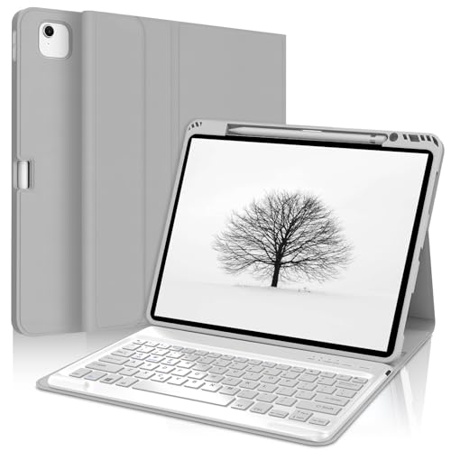 SENGBIRCH Keyboard Case for iPad Pro 12.9" 6th Generation 2022 / 5th Generation 2021, UK Layout Detachable Keyboard Case for iPad Pro 12.9 Inch 2020/2018 4th /3th Gen, Gray