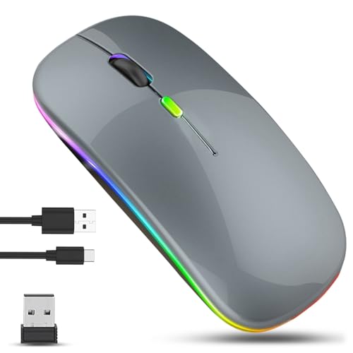 Bluetooth Mouse, iAmotus 2.4G USB Mouse LED Wireless Rechargeable Mouse (Bluetooth 5.2 + 2.4G) Ultra Slim Quiet Mouse for Computer, PC, Desktop, Laptop, iPad, MacBook, Mac OS, Windows, Android