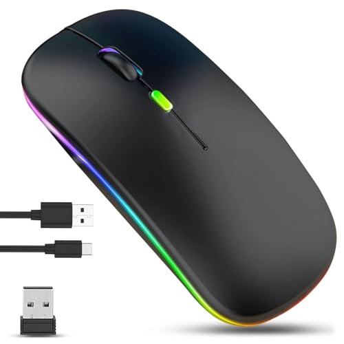 Rechargeable Wireless Mouse, 2.4G & Bluetooth Mouse for Laptop, Slim Silent Mice Ergonomic Cordless Design with USB Receiver, Adjustable Backlight, Compatible with Macbook iPad PC Computer Notebook