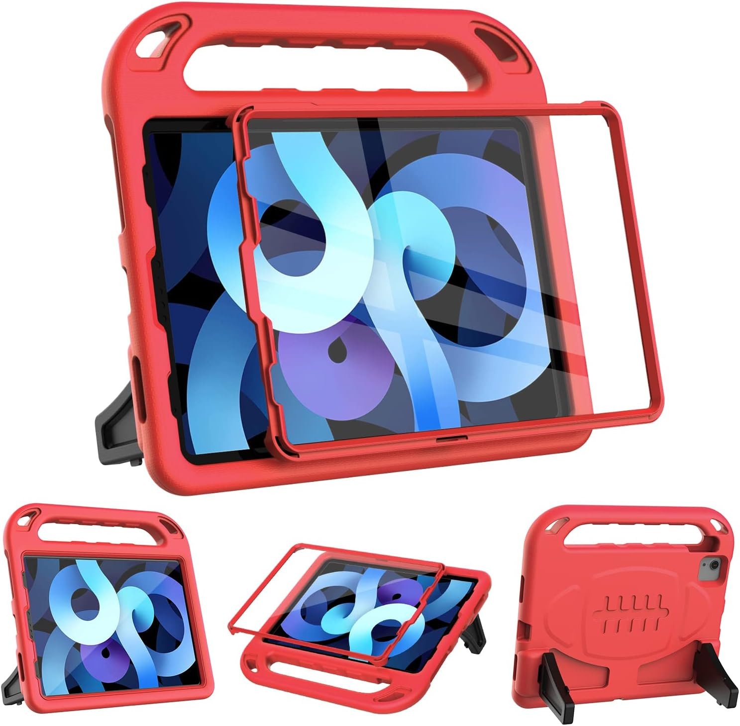 GOZOPO Kids Case for iPad 9th/8th/7th Generation (10.2 Inch, 2021/2020/2019 Release), with Built-in Screen Protector and Kickstand, Shockproof Lightweight Handle Cover for i Pad 9/8/7 Gen, Red