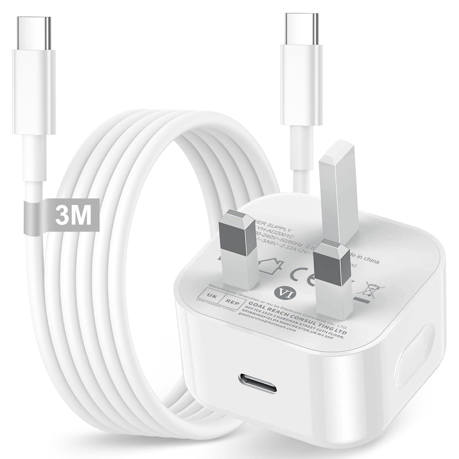 iPad Charger,USB C Fast Charger Cable and 25W UK Power Plug,Tablet Chargers for iPad Pro 12.9/11 inch,iPad Air 5/4,iPad Mini 6 Gen/iPhone 16/15/Pro/Plus/Pro Max (Charger+1*Cable)