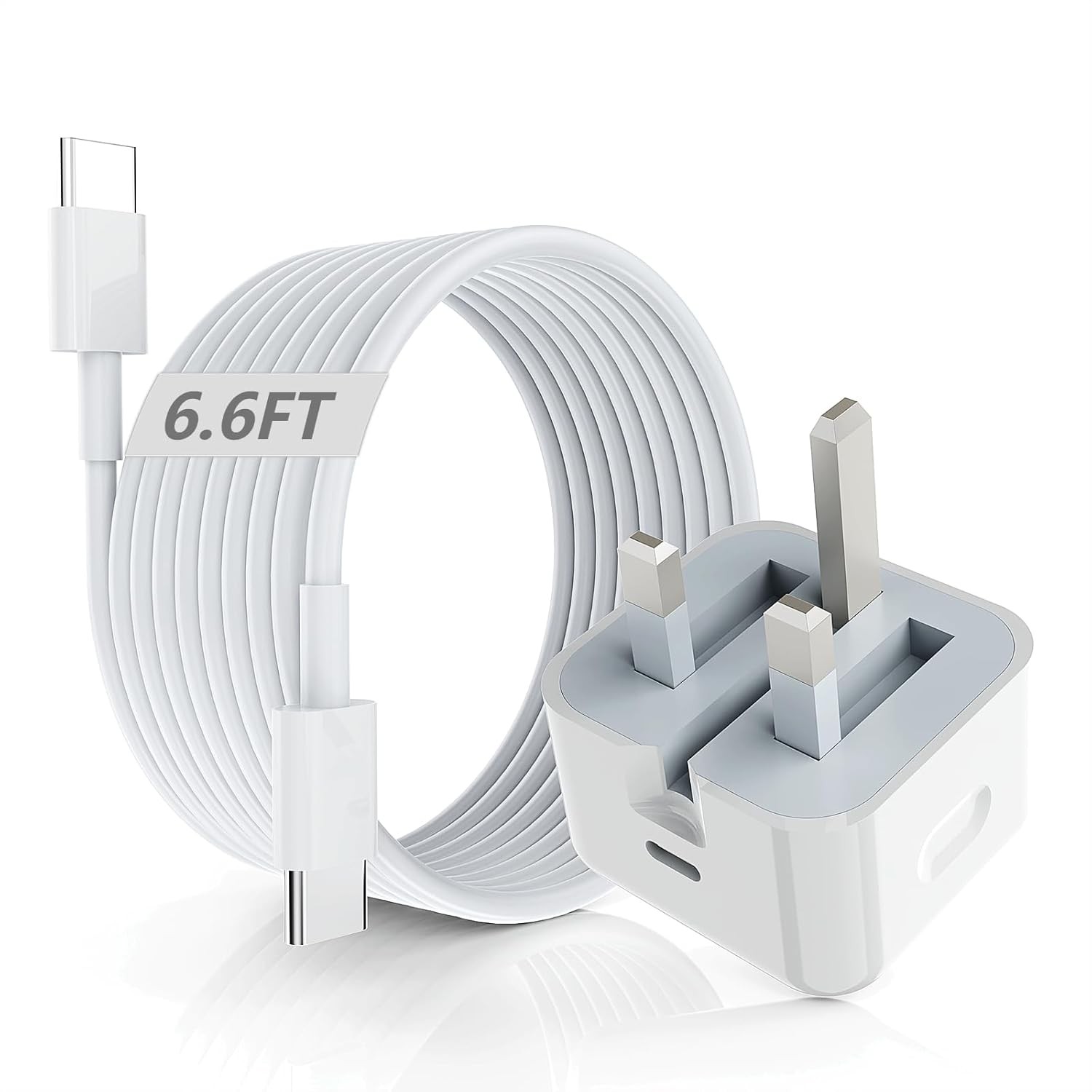 iPad Charger and Plug [MFi Certified] USB C 20W PD Charger with 2M Extra Long USBC Charging Cable UK Power Adapter for iPad Pro 12.9/11 inch,iPad Air 5/4,iPad Mini 6 Gen/iPhone 16/15/Pro/Plus/Pro Max1