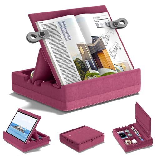 KDD Book Stand Holder for Reading, Multi-Angle Viewing Reading Pillow Stands with Organizer Tray for Lap, Bed, Desk and Couch, Foldable Tablet Pillow Holder for I-pad, Phone, E-Reader (4.7"-15")