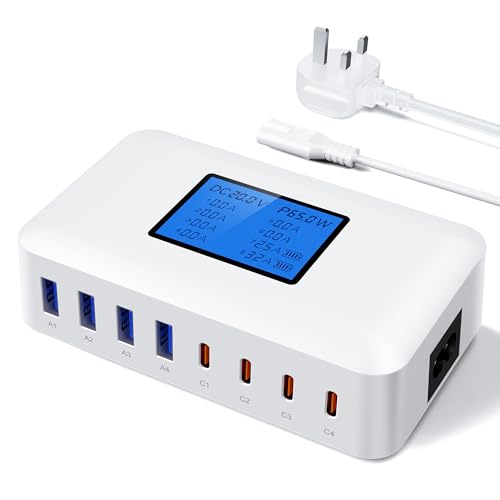 200W USB Charging Station, Sanicata 8 Port USB Charger Hub GaN Desktop Fast Charger for Multiple Devices, LCD Display Multi USB C Block for MacBook iPhone 16 15 14 13 Pixel Samsung Galaxy iPad