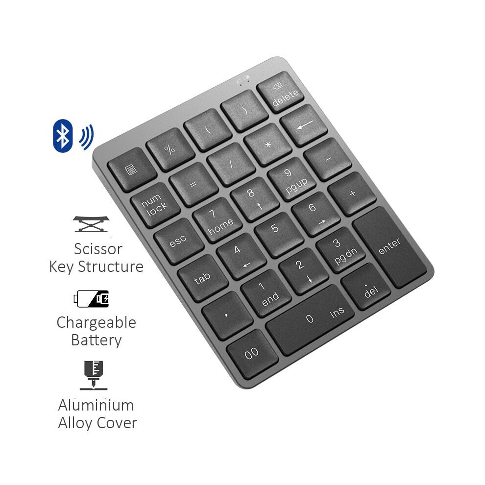 Aluminium Alloy 28 Keys Bluetooth Numeric Keyboard Portable Keypad with USB Hub Splitter for iPad