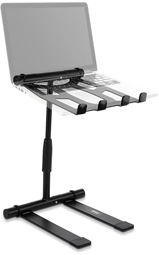 Pyle Laptop Stand for Desk, Ergonomic Foldable Laptop Riser for Desk, Angle/Height Adjustable Laptop Stand, Portable Dj Lap Top Stand, 4 Prong Anti-Slip Tray for iPad, Tablet, MacBook, DJ Mixer- Black