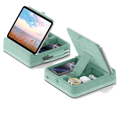 KDD Tablet Pillow Holder, Multi-Angle Viewing Ipad Holder for Lap, Bed and Desk, Foldable Soft Pad Dock with Stylus Mount Compatible with Ipad Pro 12.9, 10.5, 11, Air, Mini, Phones, Books, Green