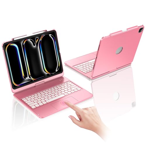KBCASE Keyboard Case for iPad 13 Pro(2024/2025 M4 M5) with 360° Rotatable Back Cover with Multi-Touch Trackpad, Wireless Bluetooth Keyboard for iPad 13 Pro Case, Pencil Holder, Rose Gold