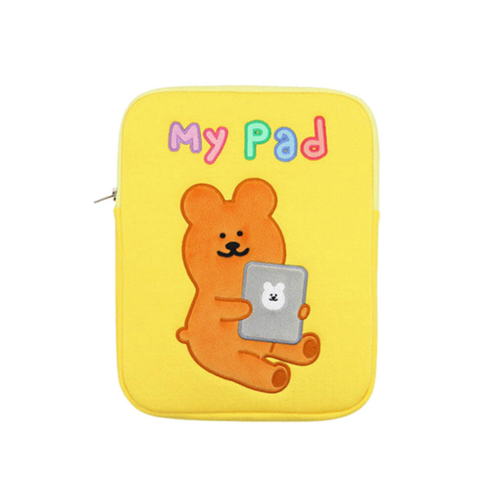 (Auburn-11 inch) Korea Cotton Soft Sleeve IPad Pouch Tablet Case 11 13 15Inch Cartoon Embroidery Bear Ipad Liner Bag Laptop Bag For Girl