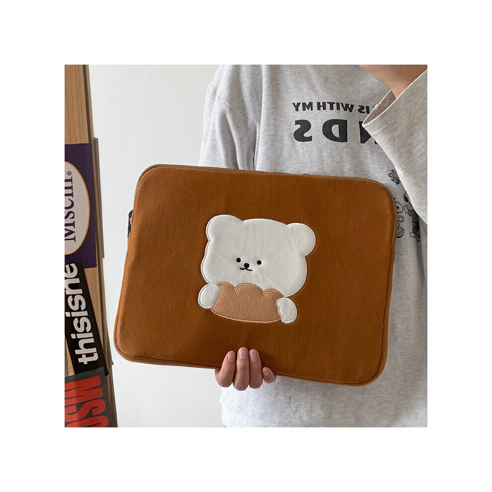 (Auburn-13 inch) Korea Cotton Soft Sleeve IPad Pouch Tablet Case 11 13 15Inch Cartoon Embroidery Bear Ipad Liner Bag Laptop Bag For Girl