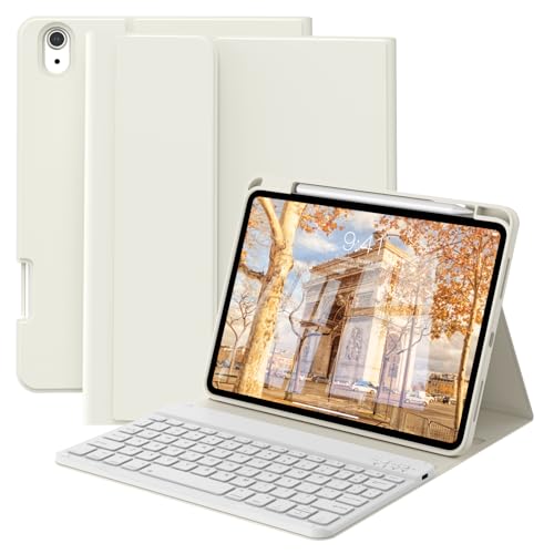 GKABXY Case with Keyboard for iPad A16 11th/10th Genration (2025/2022 11/10.9 Inch) with Pen Holder, Magnetically Detachable Wireless Bluetooth Keyboard cover for iPad 11/10, UK Layout, Cream White