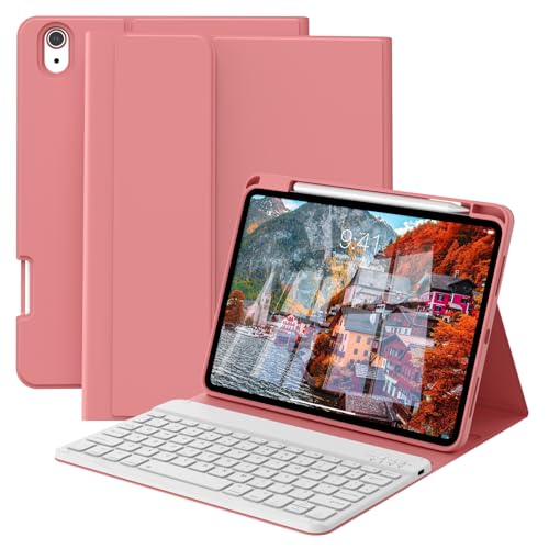 GKABXY Case with Keyboard for iPad A16 11th/10th Genration (2025/2022 11/10.9 Inch) with Pen Holder, Magnetically Detachable Wireless Bluetooth Keyboard cover for iPad 11/10, UK Layout, Pink