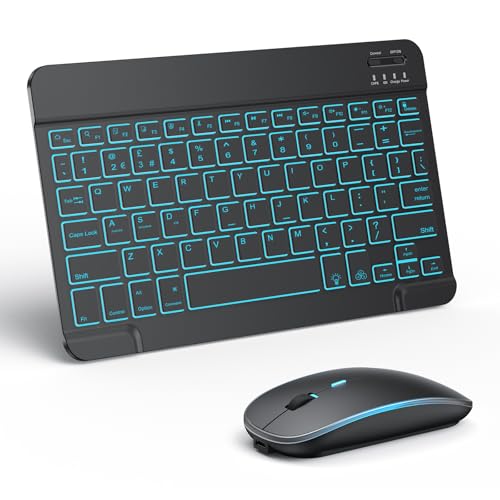 TECURS Bluetooth Keyboard and Mouse Set for iPad, Rechargeable, QWERTY UK Layout, 7-Color Backlit Wireless Keyboard Mouse for Mac/IOS/Windows/Android, Black