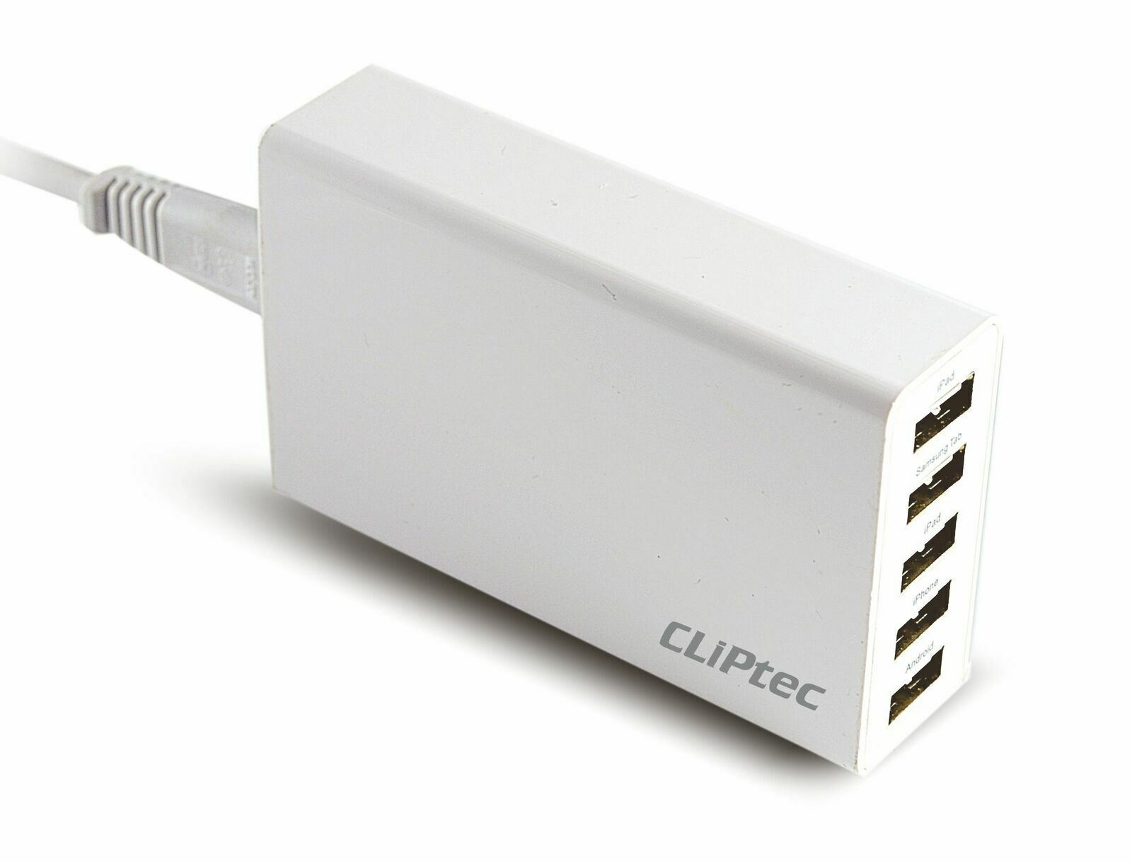 UK Mains Adaptor Charger 5 Smart USB Ports for Phones Tablets iPads 5V 2.1A 1.0A