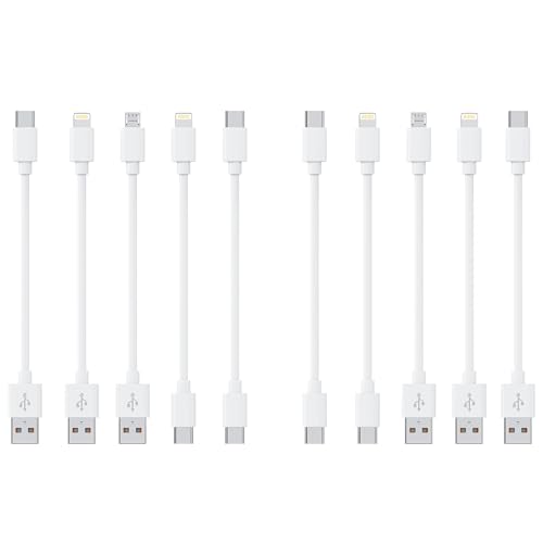 [0.75FT, 10-Pack] Multi Short USB Cables/Type-C Cables, Fast Charge & Sync C/Lightning/Micro USB Cords for Multiple Devices for iPhone16&15, iPhone5-14, iPads, Macbook, iPods, Moblies & Tablets, White