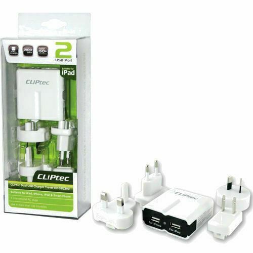 CLiPtec® USB Travel Adapter Dual USB Port for iPads, Mini iPads, Tablets & Phone