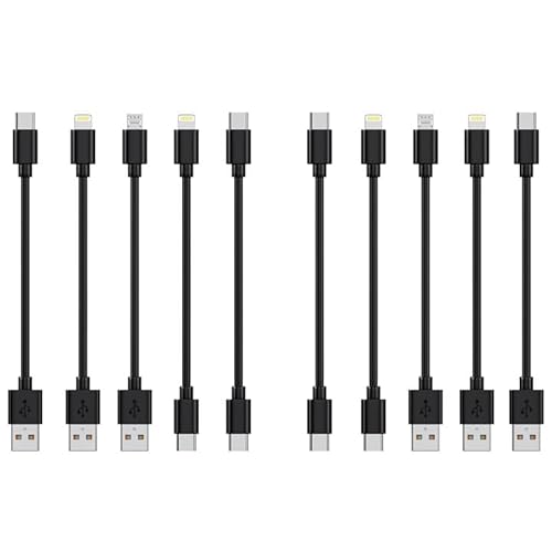 [0.75FT, 10-Pack] Multi Short USB Cables/Type-C Cables, Fast Charge & Sync C/Lightning/Micro USB Cords for Multiple Devices for iPhone16&15, iPhone5-14, iPads, Macbook, iPods, Moblies & Tablets, Black