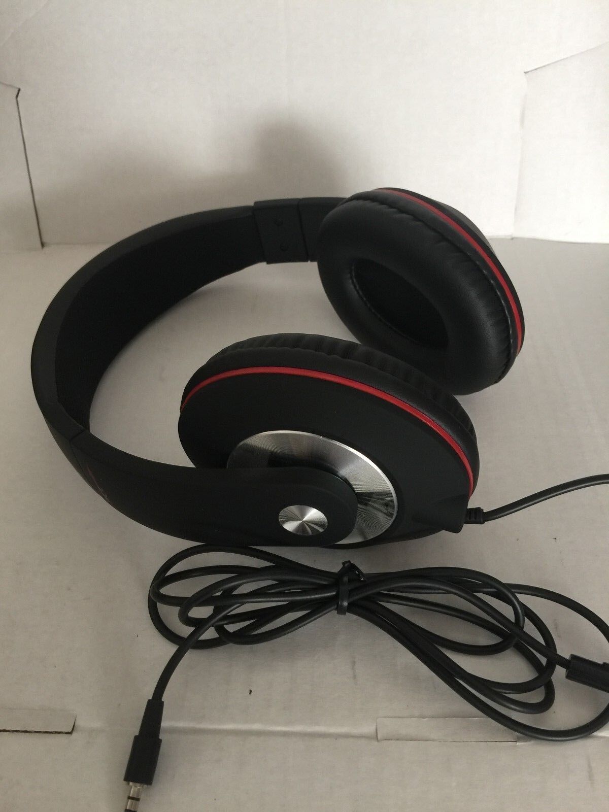Deluxe Headset For Tablets, iPads, Smart Phones HCL With In Line Mic BLACK & RED