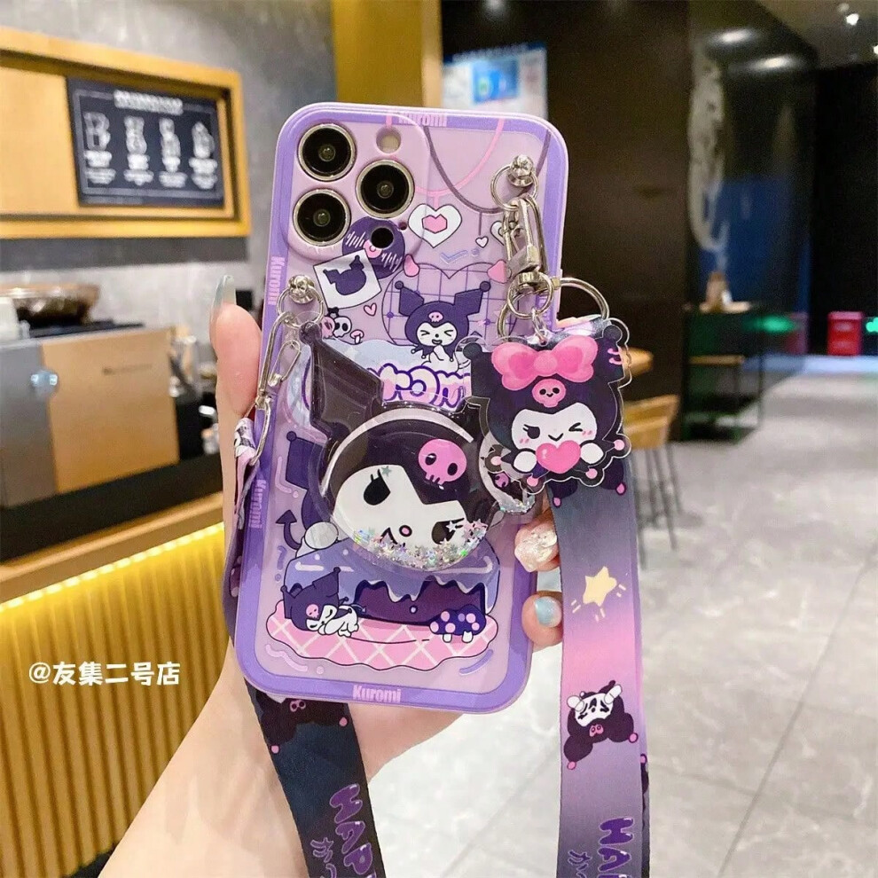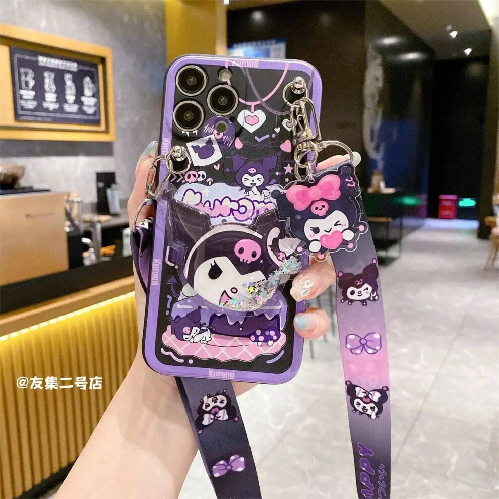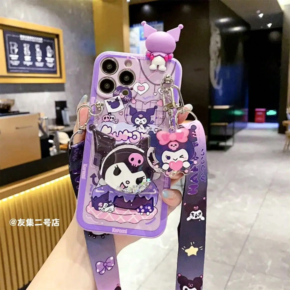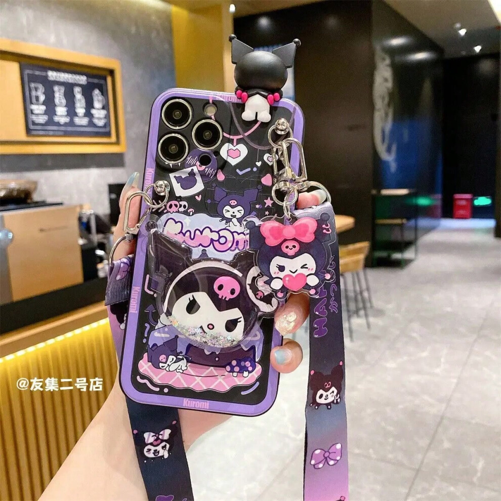 (11, iphoneXR) IPhone 16 14 15 13 12 Max X XR Plus Pro SE 8 Sanrio Kuromi Phone Case Girl Silicone Soft Cute Support Portable shoulder strap