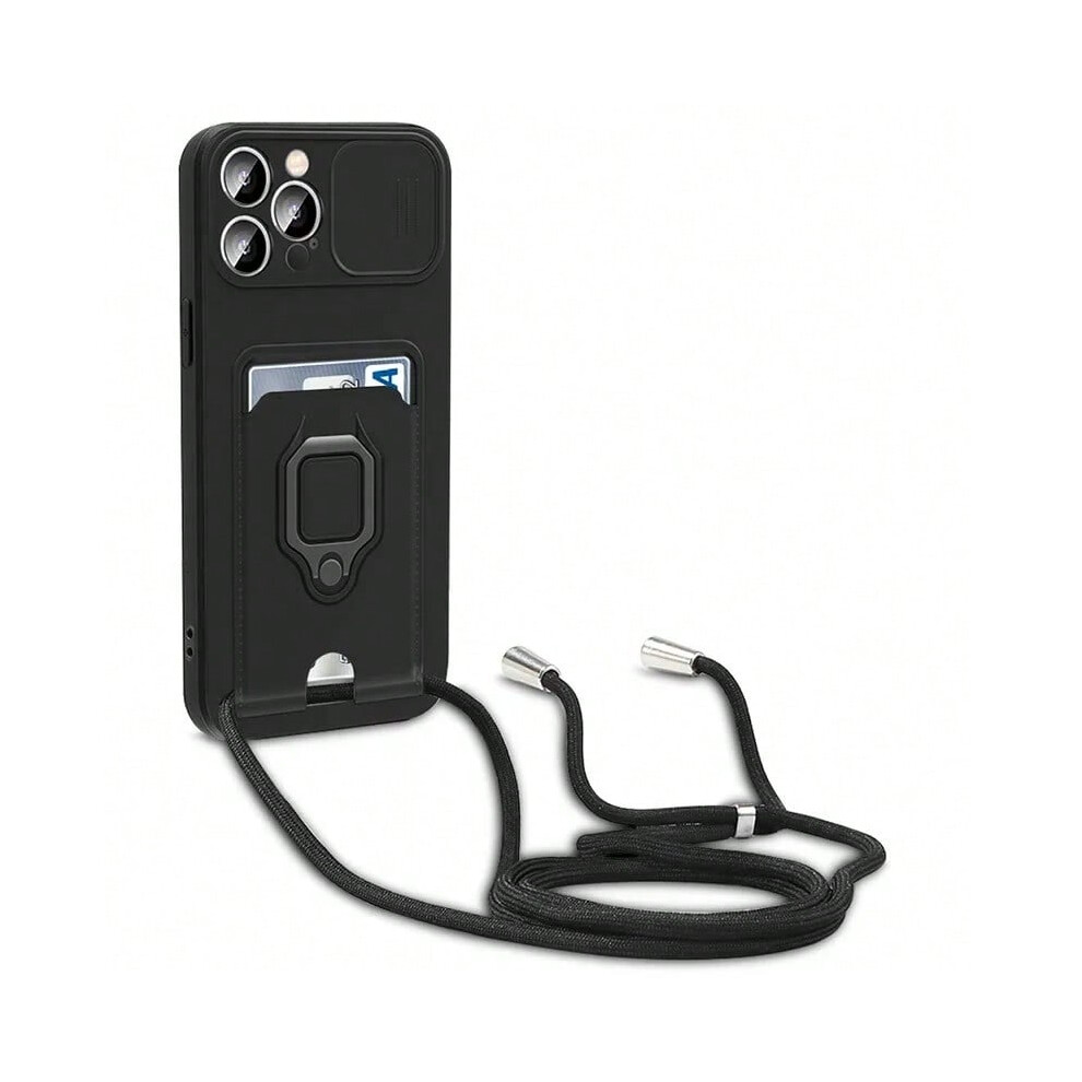 (Black, For iphone XR) Luxury Soft Silicone Crossbody Necklace Cord Strap Case For iphone 16 15 14 12 11 Pro Max 16e X XR 7 8 Plus Wallet Card Cover