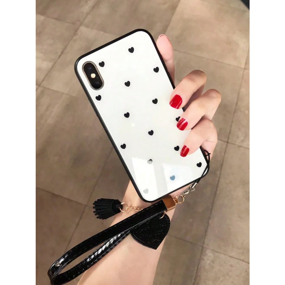 (836, for iphone xR) For iPhone 15 14 13 12 11 Pro Max se 2020 Case small Love Heart Hard Glass Cover For iPhone 7 8 Plus x xr xs max SE Give Strap