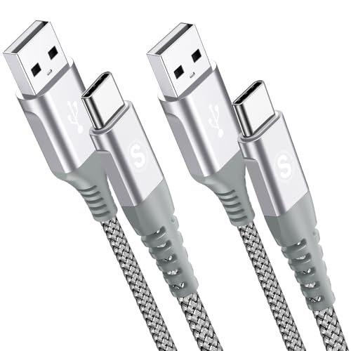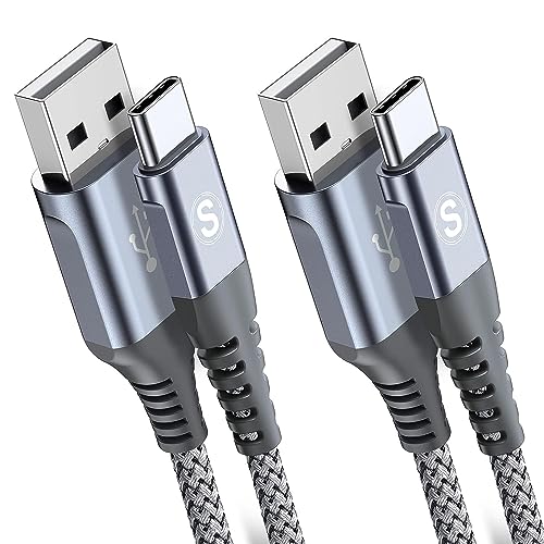 CLEEFUN 3M USB C Cable (2-Pack), Long PS5 Controller Charger Fast Charging USB-C to USB-A Braided Lead for iPhone 17 16 16e 15 Pro, Samsung S25 S24 S23 S22 S21 S20 S10 S9 S8 + A51 A52 A53 A70 -Grey
