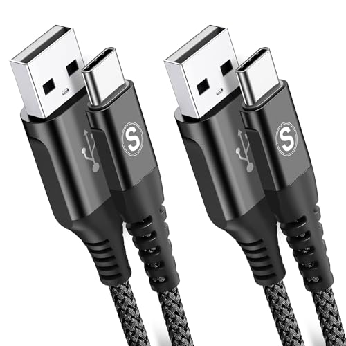 CLEEFUN USB C Charger Cable (3M, 2Pack), Black Long USB A to Type C Fast Charging Braided Lead Compatible with iPhone 15 Pro Samsung Galaxy S10 S20 S23 S24 S9 S8 Plus A20e A50 A51,PS5,Switch