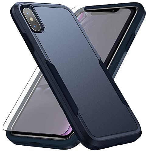 Asuwish Phone Case for iPhone Xs Max with Tempered Glass Screen Protector Cover and Slim Hybrid Full Body Protective Cell Accessories i X XR Xsmax 10x SX Xmax 10xs 10s 10 Plus Xmaxs Women Men Blue