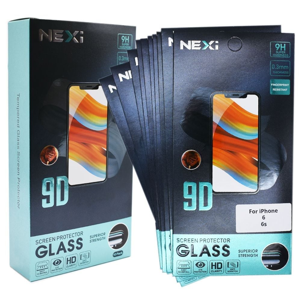 10x NEXi 9D Tempered Glass Screen Protector For iPhone 6 6s Full Cover Black UK