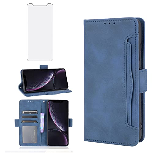 Compatible with iPhone Xs Max Wallet Case and Tempered Glass Screen Protector Card Holder Stand Magnetic Flip Cell Phone Cover for i X XR Xsmax 10x SX Xmax 10xs 10s 10 Plus Xmaxs Women Men Blue