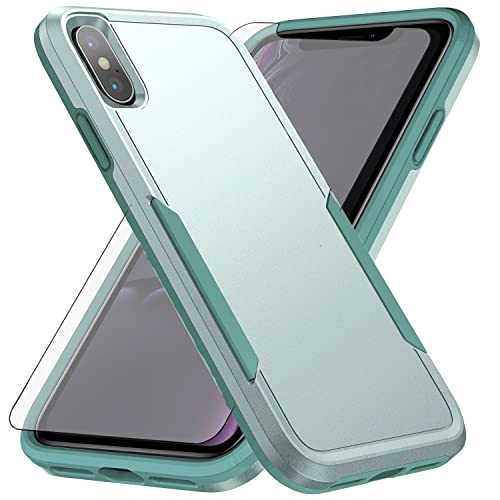 Asuwish Phone Case for iPhone Xs X 10 10s with Tempered Glass Screen Protector Cover and Slim Thin Hybrid Full Body Protective Cell iPhoneX iPhoneXs iPhone10 i PhoneX SX 10x 10xs X’s Women Men Green
