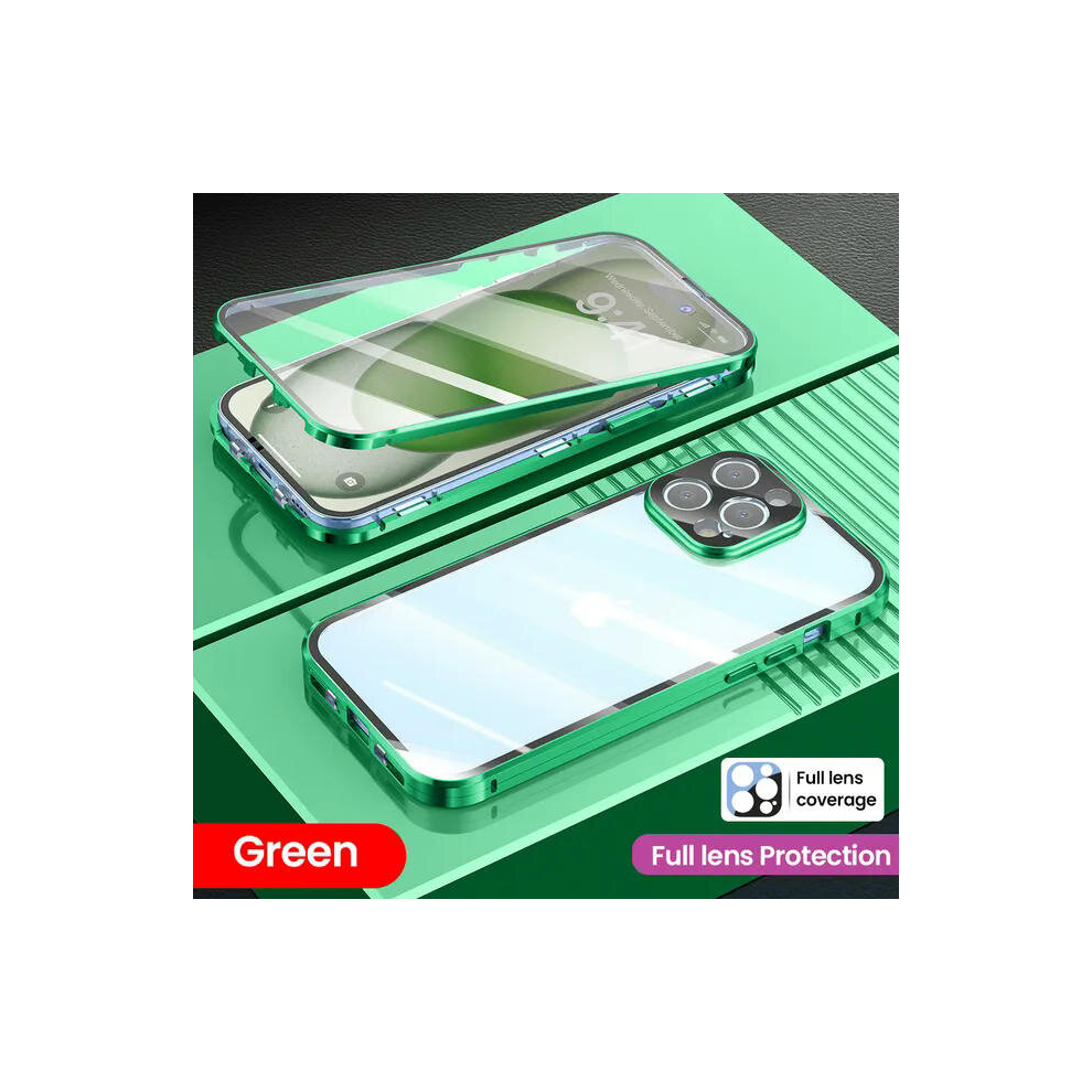(For iPhone 11, Green) 360 Full Metal Magnetic Case For iPhone 15 14 13 12 11 Pro MAX Aluminum Bumper 15Pro Wireless Charger Tempered Glass Phone Cove