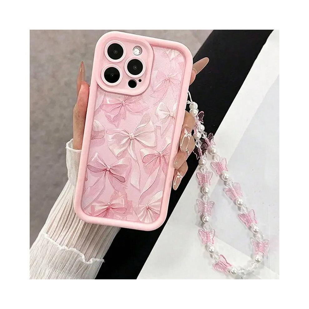 (1 Pink, For iPhone 11) Pink Bow Pattern Silicone Phone Case with Butterfly Charm Cover for Your Device Protection Cellphone