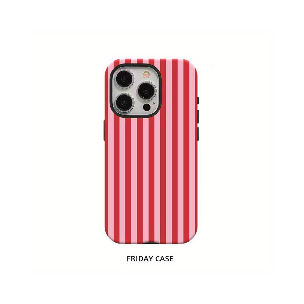 (Mixed Color 1, iPhone 11) Pink Striped, Minimalist, Dual-Layer Protective Phone Case for 16 Pro Max, 15 Pro, 13, 11, 12, XS, 8 Plus, 7 Glossy 2-In-1
