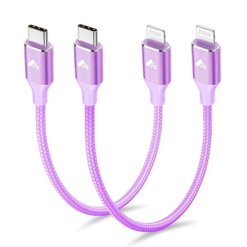 USB C to Lightning Cable 30CM 2Pack [Apple MFi Certified],Power Delivery iPhone Cables Type C iPhone Charger Cord Fast Charging Compatible iPhone 14 13 12 11 Pro Max X XS XR 8 7 6s Plus SE, Purple