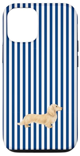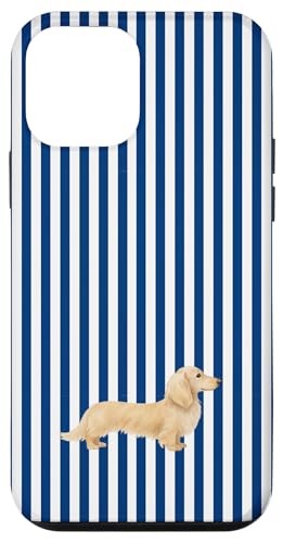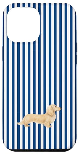 Cream Long Haired Dachshund Navy Striped Doxie Gift Case for iPhone 12/12 Pro