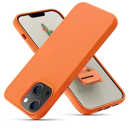 OIIAEE Silicone Case Designed for iPhone 13 Case, Ultra Slim Shockproof Protective Liquid Silicone Phone Case with Soft Anti-Scratch Microfiber Lining, 6.1 inch-Papaya Yellow