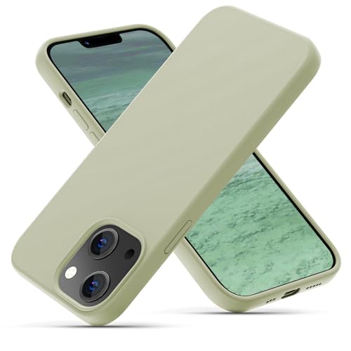 OIIAEE Silicone Case Designed for iPhone 13 Case, Ultra Slim Shockproof Protective Liquid Silicone Phone Case with Soft Anti-Scratch Microfiber Lining, 6.1 inch, Light Green