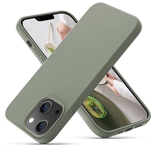OIIAEE Silicone Case Designed for iPhone 13 Case, Ultra Slim Shockproof Protective Liquid Silicone Phone Case with Soft Anti-Scratch Microfiber Lining, 6.1 inch, Copper Green
