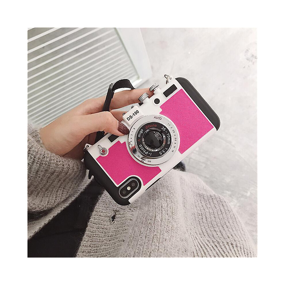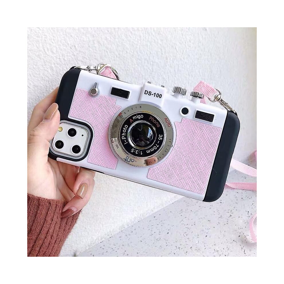 (Pink, For iPhone 13 ProMax) Luxury Lanyard Shockproof Back Cover 3d Retro Camera Emily In Paris Phone Case For Iphone 13 Pro Xs Max