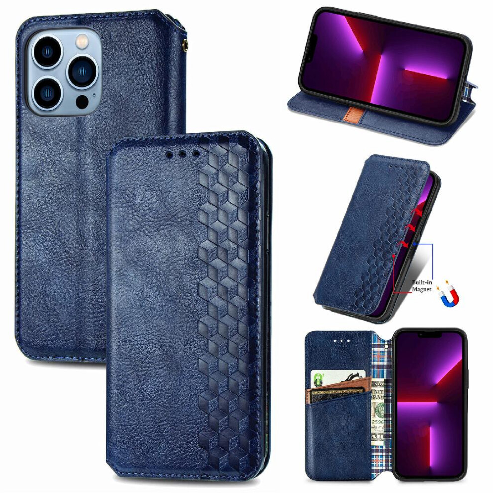 (Blue) Case For APPLE IPhone 13 ProMax Exquisite Business Leather Case Flip Cover Fashion Design Wallet Function