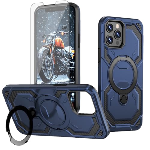 Asuwish Phone Case for iPhone 12 Pro Max/13 ProMax and Magnetic Ring Holder Kickstand with Screen Protector Cover Slim Cell Accessories iPhone12promax i 12pro Promax iPhone13promax Women Men Navy Blue