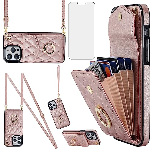 Asuwish Phone Case for iPhone 13 Pro Max 2021 6.7 inch Wallet Cover with Screen Protector Ring RFID Blocking Credit Card Holder Cell iPhone13promax 5G i Phone13Max Plus iPhone13 ProMax Women Rose Gold