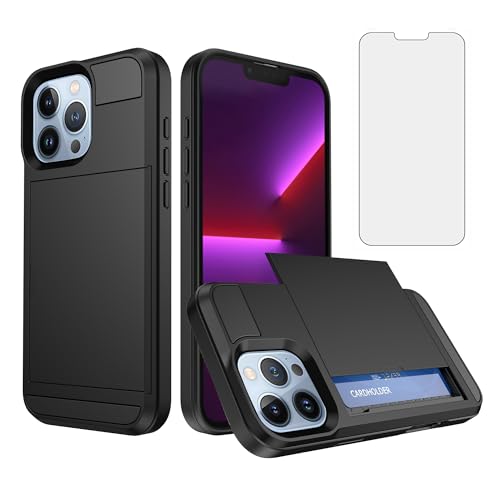 Asuwish Phone Case for iPhone 13 Pro Max 2021 6.7 inch with Screen Protector Cover and Card Holder Hybrid Full Body Protective Cel iPhone13promax 5G i Phone13Max Plus iPhone13 ProMax Women Men Black